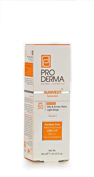ضد آفتاب بژ روشن پرودرماSPF 50مناسب پوست چرب ml40