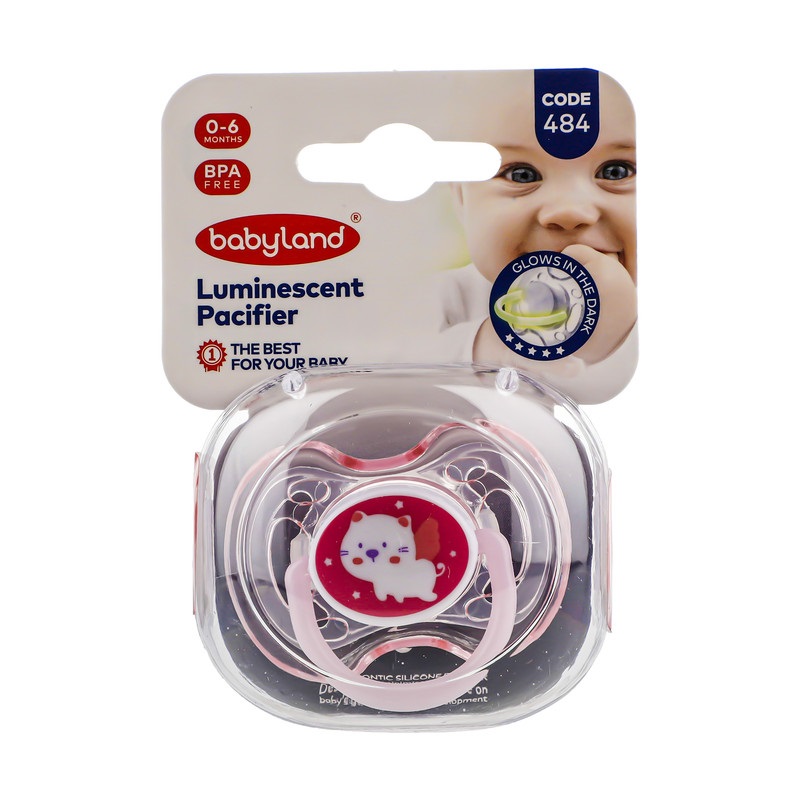 پستانک ارتودنسی شب تاب بیبی لند کد 484 با دسته شب تاب و سری سیلیکونی وسیله ای برای آرام کردن نوزاد هنگام گریه است. این پستانک فاقد مواد مضر است و برای نوزادان تازه متولد شده تا 6 ماهه مناسب است.