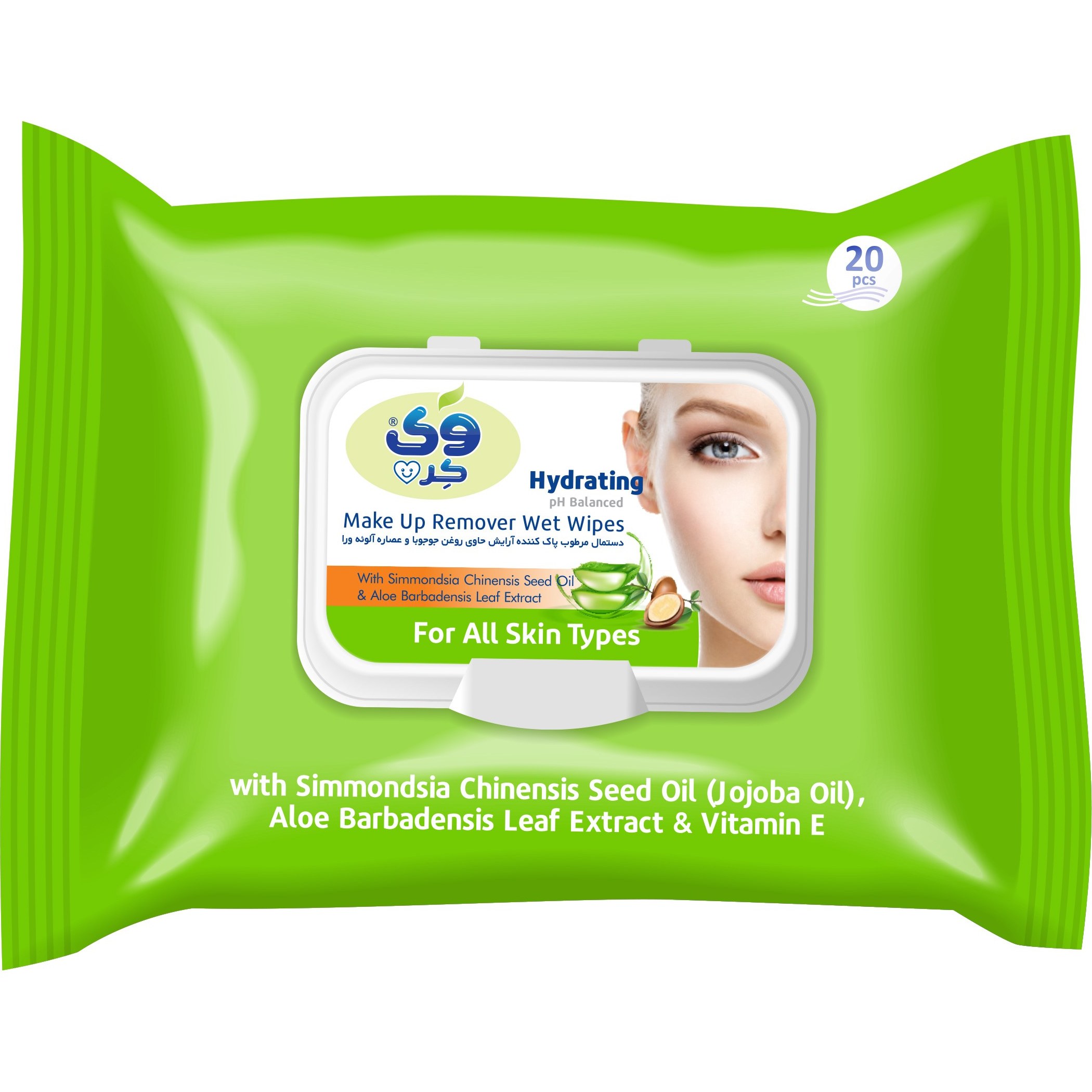 دستمال مرطوب پاک کننده آرایش 20 برگی حاوی جوجوبای و الوئه ورا وی کر
